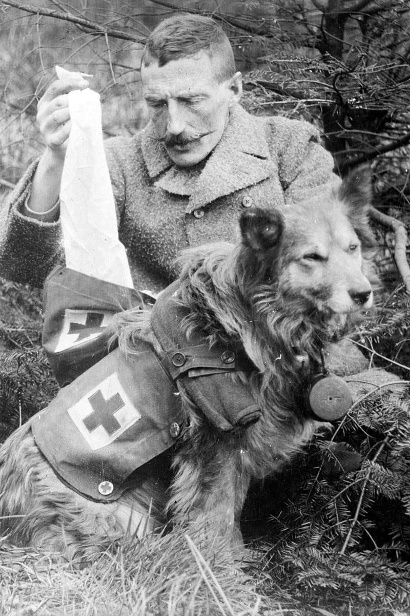 Chiens, chevaux et même chats participaient directement à la survie des soldats. Les chiens sanitaires de la Croix Rouge notamment, furent spécialement entraînés pour localiser et aider les soldats blessés sur le champ de bataille, certaines bêtes portant même des trousses de premiers secours. Outre ces missions de secours, il n'était pas rare que des chats soient employés à chasser les rats des tranchées afin de garantir plus d'hygiène pour les soldats.