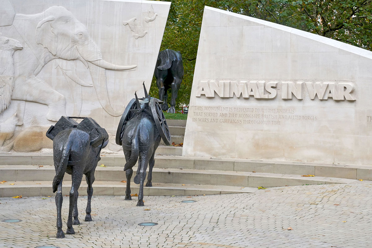 Le Mémorial des animaux de guerre (Londres), rend hommage aux innombrables animaux qui ont servi, souffert et péri aux côtés des forces britanniques, du Commonwealth et des Alliés lors des guerres et des conflits du 20e siècle.
