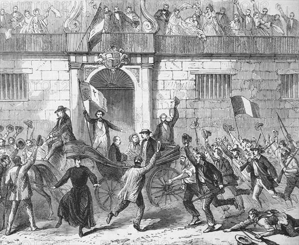 The release of political prisoners from the Castlemare, Palermo, on June 19th. From a sketch by artist Frank Vizetelly. 1860