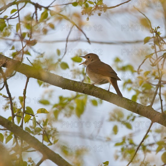 Nightingale (Luscinia megarhynchos), singing, Thuringia, Germany, Europe