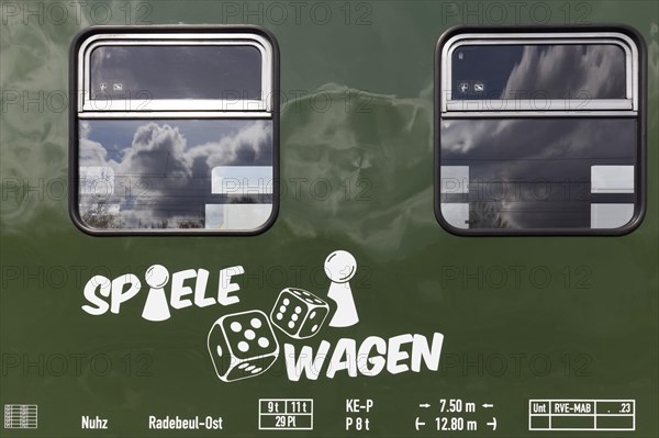 Historic wagon, toy wagon of the narrow-gauge railway Loessnitzdackel, Loessnitzgrundbahn, Radebeul-Ost station, Radebeul, Saxony, Germany, Europe