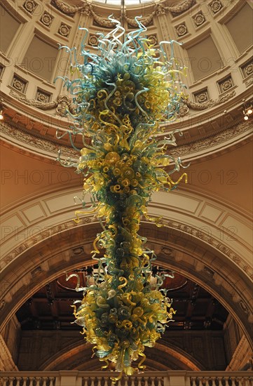 Artistic glass object under the dome in the reception hall of the Victoria & Albert Museum, 1-5 Exhibition Rd, London, England, Great Britain