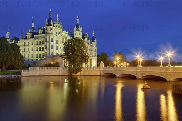 Castle by night Schwerin Germany