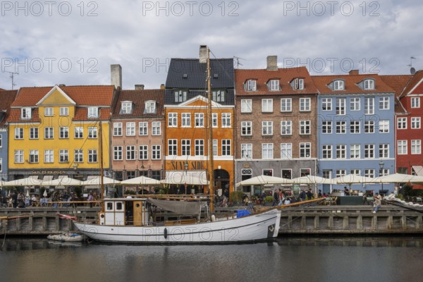 Nyhavn, in the Frederiksstaden district, harbour district with houses over 300 years old, moored sailing boats, promenade with many cafés, pubs, restaurants, canal, tourist attraction, Copenhagen, Denmark, Europe
