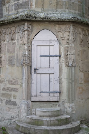 Tower door at St Vitus Church, Iphofen, Lower Franconia, Bavaria, Germany, Europe