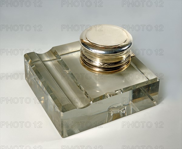 Crystal and silver inkwell.