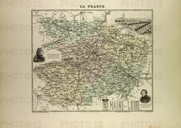 MAP OF MAINE AND LOIRE, 1896, FRANCE