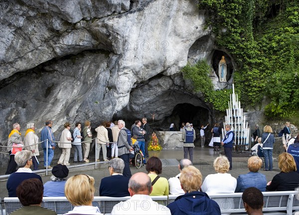 Place of the Apparition of the Virgin Mary, pilgrim at the Grotto Massabielle, Lourdes, Department of Hautes Pyrenees, France, Europe