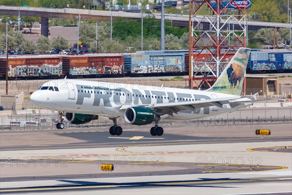 Airbus A320 aircraft of Frontier Airlines with registration N207FR at Phoenix Airport, USA, North America