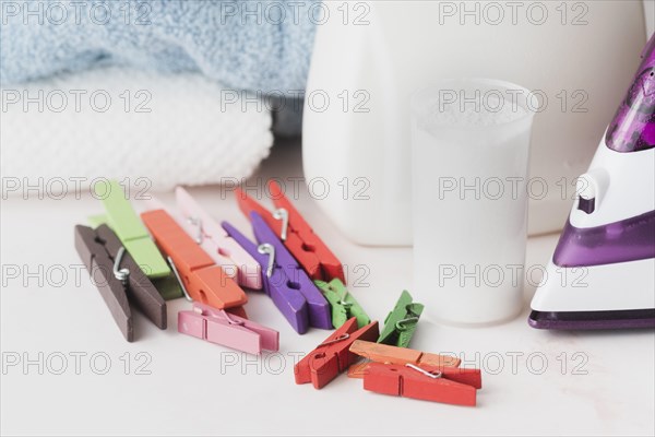 Close up detergent cup with pegs