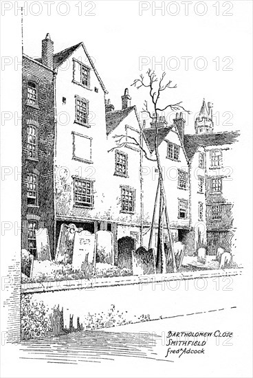 Bartholomew Close, Smithfield, London, 1912.Artist: Frederick Adcock