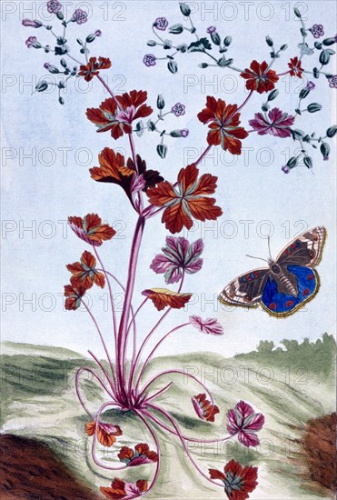 Glossy Cranesbill, from 'Collection Precieuse et Enluminee', pub. 1776 (hand coloured engraving). Le Bec de Grue Luisant.