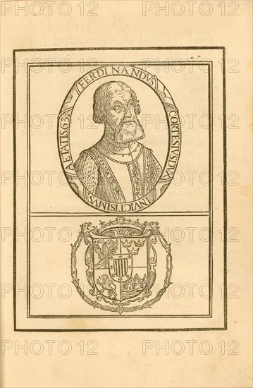 Portrait of Hernán Cortés (1485-1547) with his coat of arms, 1588. Creator: Anonymous.