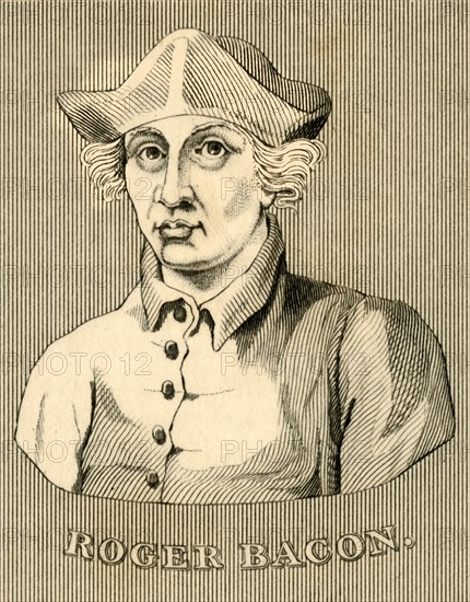'Roger Bacon', (1219-1292), 1830. Roger Bacon (1219-1292) medieval English philosopher and Franciscan friar. From "Biographical Illustrations", by Alfred Howard. [Thomas Tegg, R. Griffin and Co., J. Cumming, London, Glasgow and Dublin, 1830]