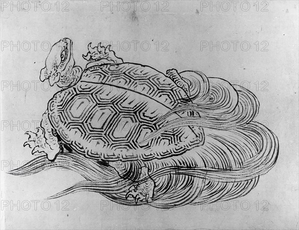 Sea Turtle (Emblem of Longevity), 18th-19th century. Creator: Hokusai.