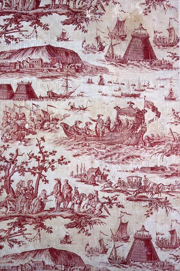 The Inauguration of The Port of Cherbourg by Louis XVI (Furnishing Fabric), Nantes, c. 1787. Creator: Petitpierre et Cie.