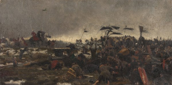La soumission des Casselois, 10 janvier 1430, (1887). The people of Cassel throw themselves at the mercy of Philip the Good in the marshes of Saint-Omer, 10 January 1430. (Les Casselois, dans les marais de Saint-Omer, se rendant à merci au duc Philippe le Bon).