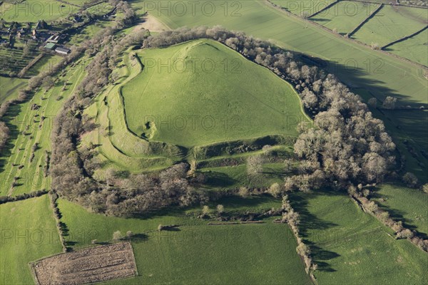 Cadbury Castle, the earthwork remains of an Iron Age hillfort, Somerset, 2019. Creator: Damian Grady.
