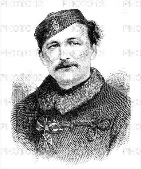 Sir Randall Roberts, Bart., Captain of the Irish Eight at Wimbledon, 1871. Roberts took part in '...the competition for the Elcho Shield, the international challenge prize between select parties from England, Scotland, and Ireland...[He was] present in the Crimean and the Indian Mutiny wars...During the late war between France and Germany...[he] acted as a special correspondent of the Daily Telegraph...He gained some personal distinction by the gallantry which he showed in battle, whenever he had an opportunity of saving the lives of other men at the risk of his own...After the battle of Bapaume, as he rode through a detachment of the enemy's cavalry, to send his letter to the Daily Telegraph, his boot was shot through..., while his horse was wounded in the side...At St. Quentin, while suffering from a severe contusion, he saved four French soldiers, whom he took out of a burning house...For the manner in which he went through such perilous adventures Sir Randall Roberts has been presented by the Emperor of Germany with the Iron Cross. He appears in the Portrait we have engraved wearing that decoration'. From "Illustrated London News", 1871.