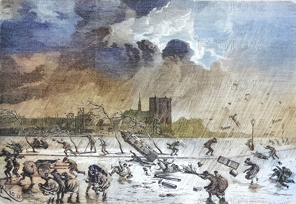 The hurricane of March 8, 1869 in Paris, France, Historical, digitally restored reproduction of an original artwork from the 19th century, exact original date unknown.