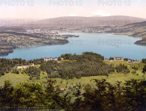 view of Lucerne, Lake Lucerne, Switzerland , Historical, digitally restored reproduction from an original from the 19th century.