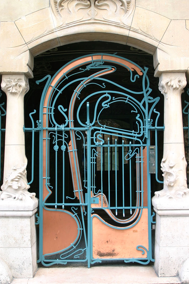 Icône absolue de l’Art nouveau, le Castel Béranger est le premier HLM de Paris de ce style. Conçu par l'architecte Hector Guimard en 1898, l'immeuble connaîtra un immense succès et sera consacré par le premier prix de la plus belle façade de la Ville de Paris la même année. Pour la porte d'entrée, Guimard choisit le fer forgé et s'essaye aux feuilles de cuivre verni, dont la couleur contraste magnifiquement avec les barres d'acier turquoises. C'est bel et bien le Castel Béranger qui va lancer la carrière Art nouveau de Guimard, et qui lui vaudra notamment de remporter le marché pour la construction des futures stations de métro parisiennes.