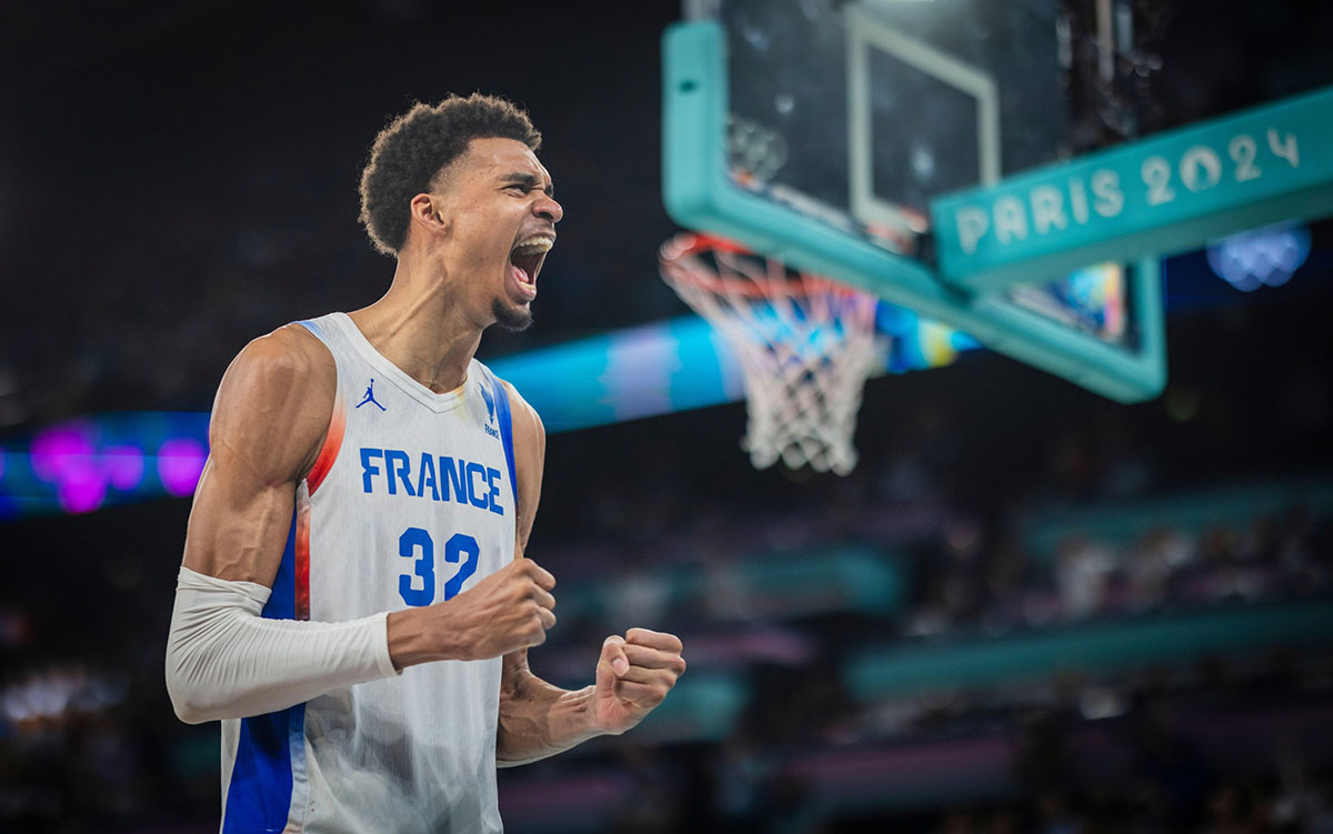 Le basketteur Victor Wembanyama après la victoire de la France contre l'Allemagne en demi-finale aux J.O. de Paris 2024.
