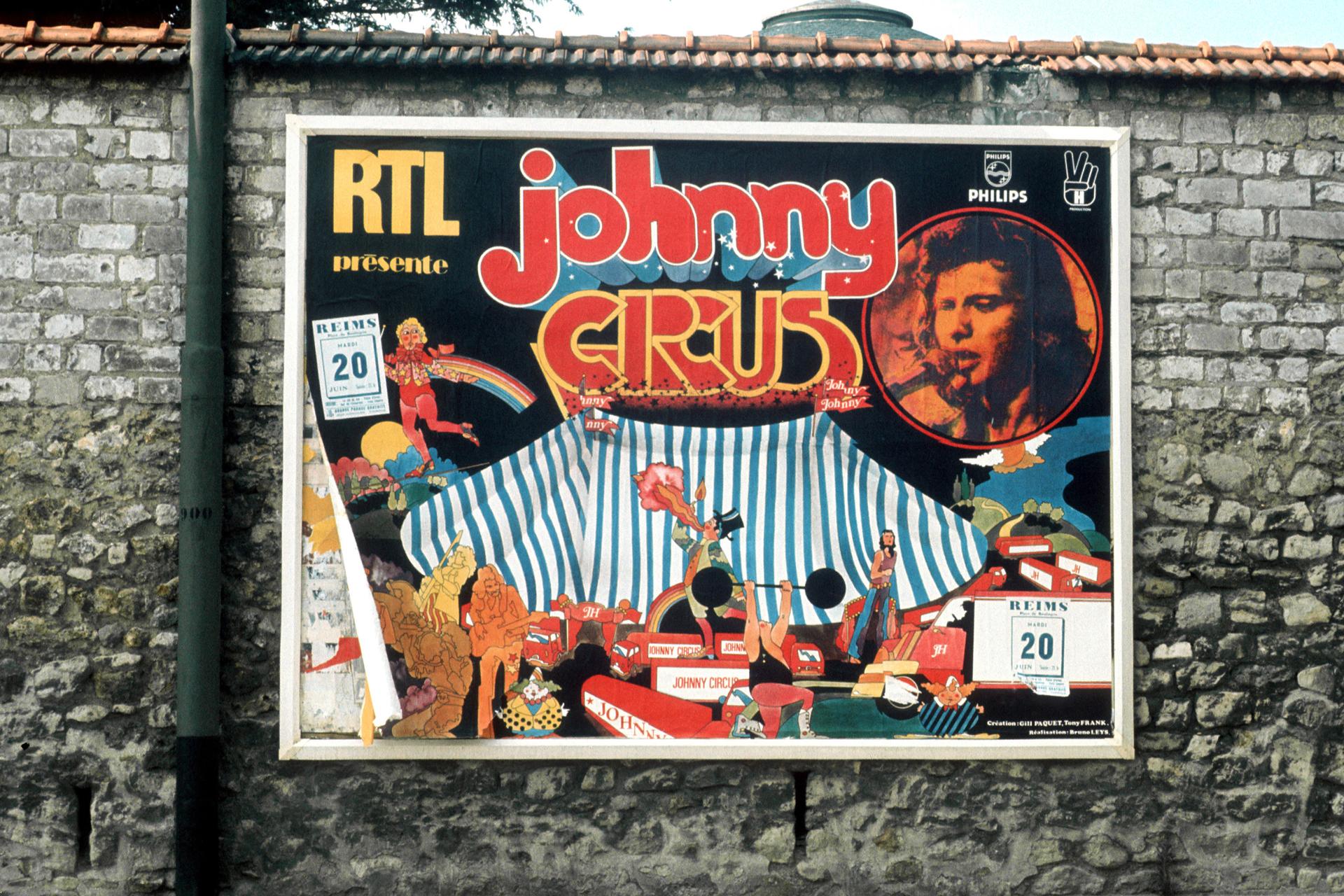 Affiche de la tournée "Johnny Circus" pour un concert le 20 juin 1972 à Reims.