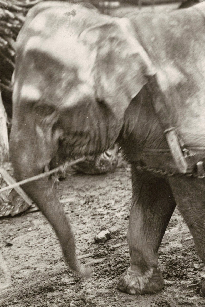 L'éléphante Jenny transportant du bois sur le front allemand, en 1915.