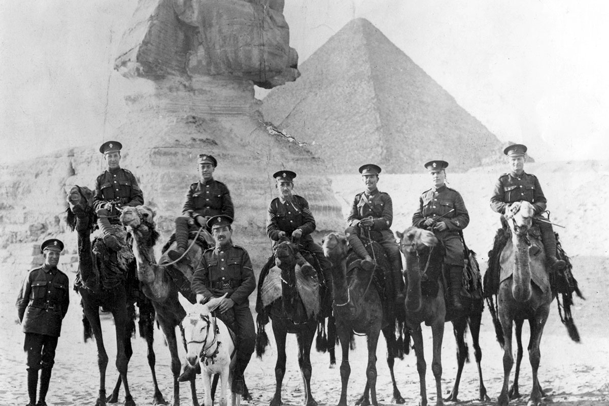 Légionnaires juifs à dos de chameau, Gizeh, Égypte, Première Guerre mondiale, 1915-1918.