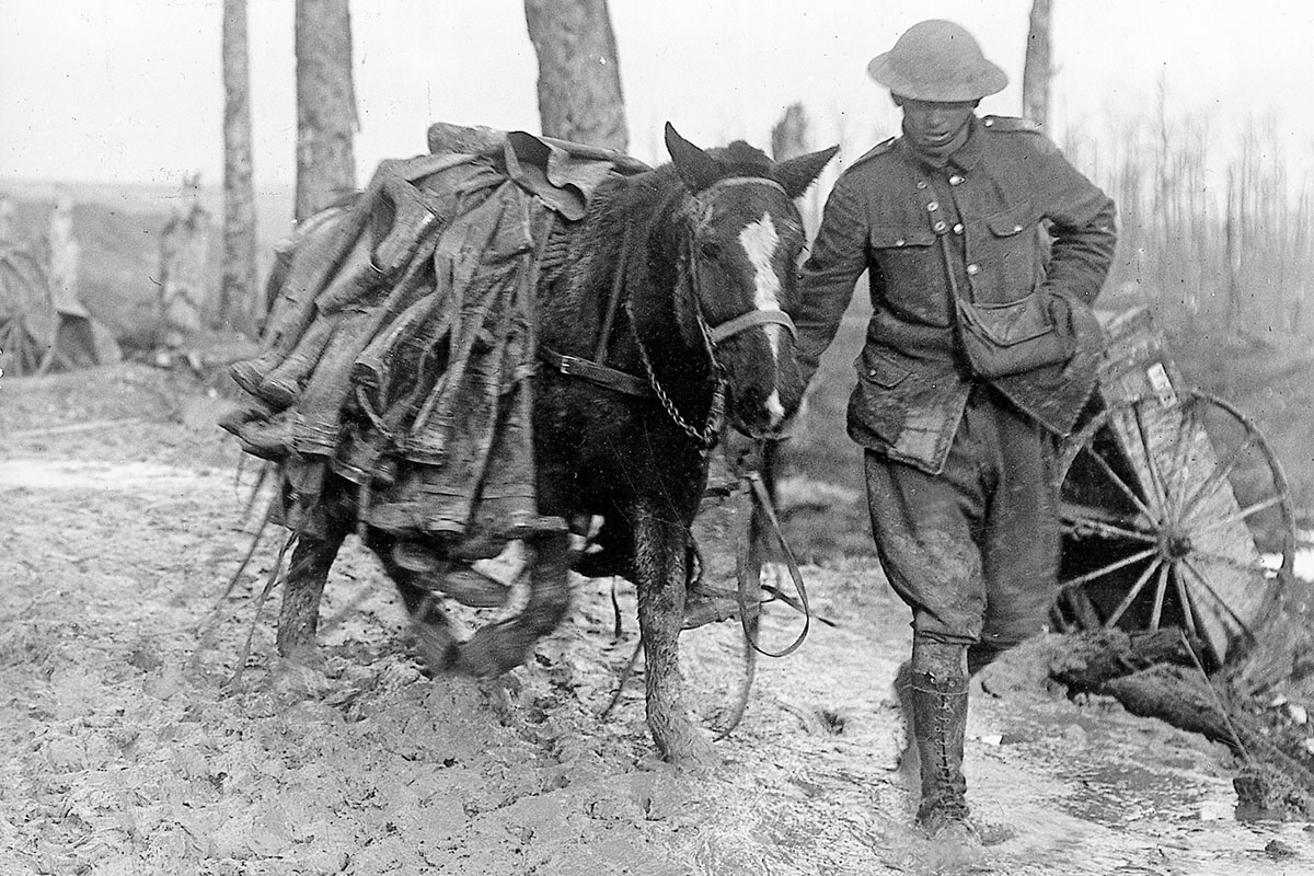 Parmi les animaux mobilisés lors de la Première Guerre, les chevaux furent l’épine dorsale de la logistique militaire, transportant canons, munitions et ravitaillement mais aussi les hommes. Là où la motorisation faisait défaut, ils furent indispensables pour acheminer les denrées essentielles aux soldats. On estime à 11 millions d'équidés (chevaux mais aussi ânes et mulets) mobilisés par les armées.
