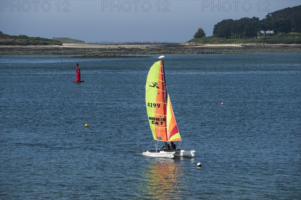 Catamaran in the bay near Landeda, Brittany, France, Europe