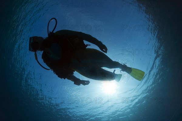 Silhouette of a scuba diver under water, Pazifik, Australia, Oceania