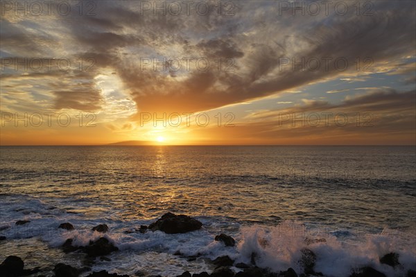 Sunset over the sea, La Puntilla, Valle Gran Rey, La Gomera, Canary Islands, Spain, Europe