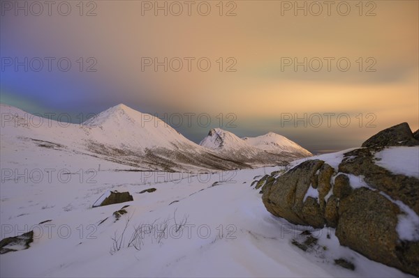 Mountains in the moonlight in winter, Grotfjord, Tromsø, ?Troms, Northern Norway, Norway, Europe