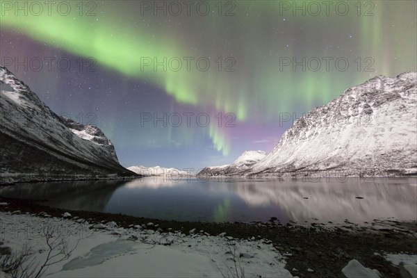Aurora over the Grotfjord, Tromso, Troms, Norway, Europe