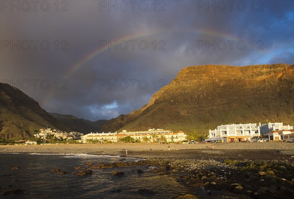 Villages of La Calera and La Puntilla, rainbow, Valle Gran Rey, La Gomera, Canary Islands, Spain, Europe