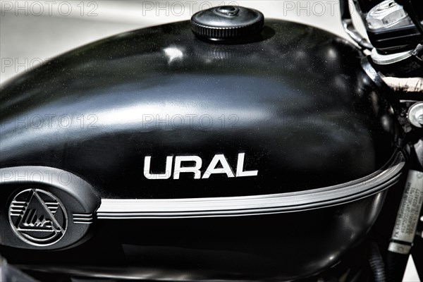Logo of a Ural on the petrol tank, Berlin, Germany, Europe