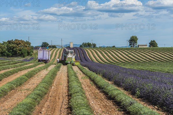 Lavender harvest in Valensole, Plateau de Valensole, Departement Alpes-de-Haute-Provence, Provence, France, Europe