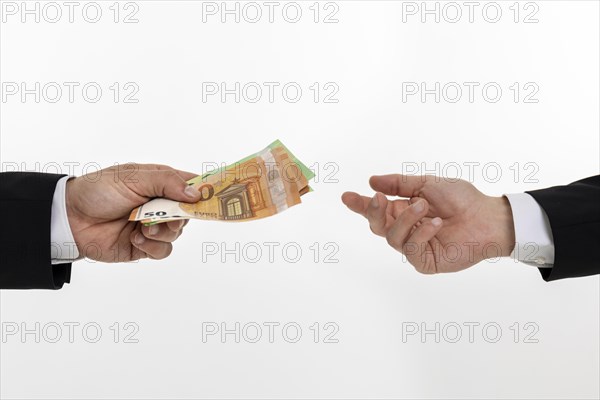 Businessman hands over banknotes, Germany, Europe