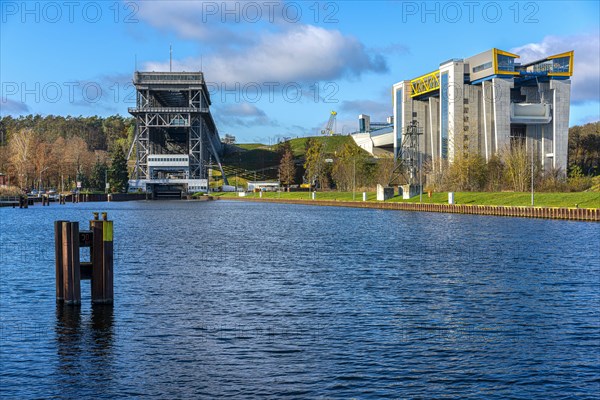 The old and new ship's hoist in Niederfinow, Brandenburg, Germany, Europe