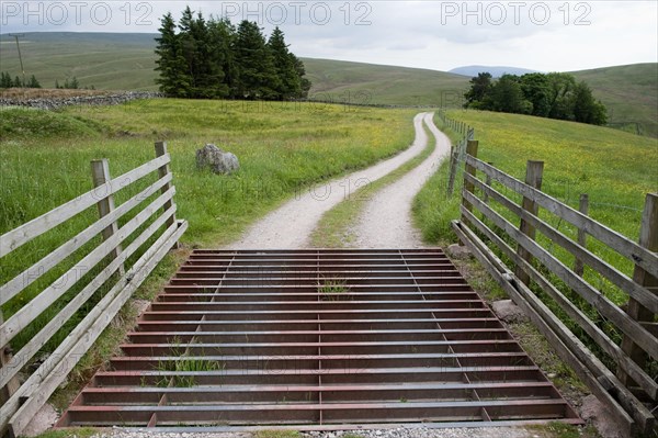 Cattle grid on narrow country lane, Cumbria, England, United Kingdom, Europe