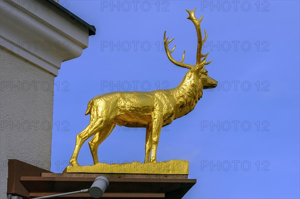 Nose sign, The golden stag from the Hotel Brauerei Deer, Ottobeuren, Allgaeu, Bavaria, Germany, Europe