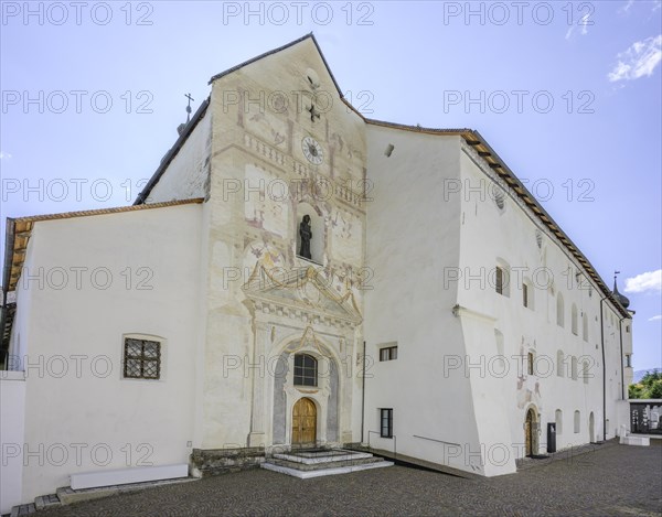 Entrance to the church, Marienberg Abbey, Mals, South Tyrol, Italy, Europe