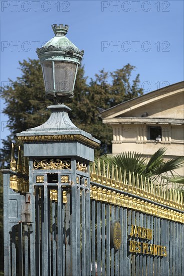 Historic egg walk with lantern and lettering Jardin des Plantes, Botanical Garden, Paris, France, Europe