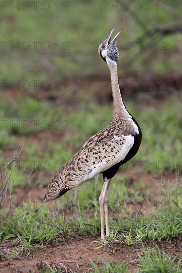 Red-crested Bustard, (Lophotis ruficrista), adult, calling, Kruger National Park, Kruger National Park, South Africa, Africa