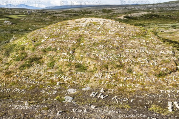 At the Polar Center, Arctic Circle at road E6, 66.33 degree north, Saltfjell, hundreds of cairns build by tourists, Nordland, Norway, Europe