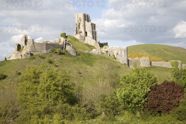 Corfe Castle is located in a natural defensive site on a hill between chalk ridges and for a thousand years has guarded the entry into the Isle of Purbeck. The ruined state of the castle date from the English Civil War when it was twice held siege in the 1640s and subsequently largely demolished
