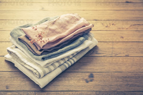 Concept of sustainability - fabric made from natural materials such as cotton and linen on wooden background