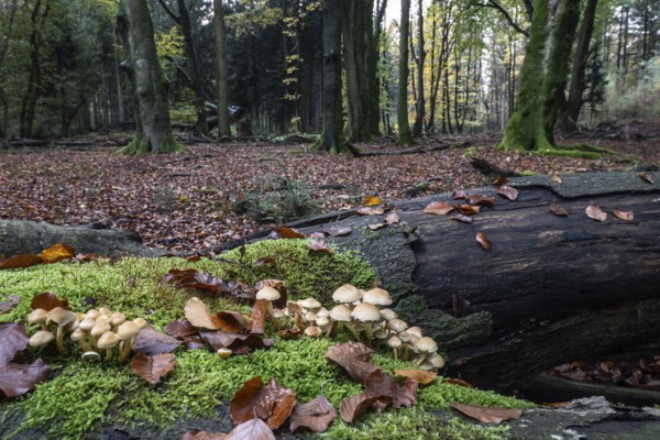 Sulphur tuft (Hypholoma fasciculare), Emsland, Lower Saxony, Germany, Europe